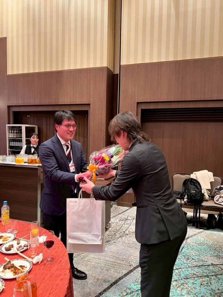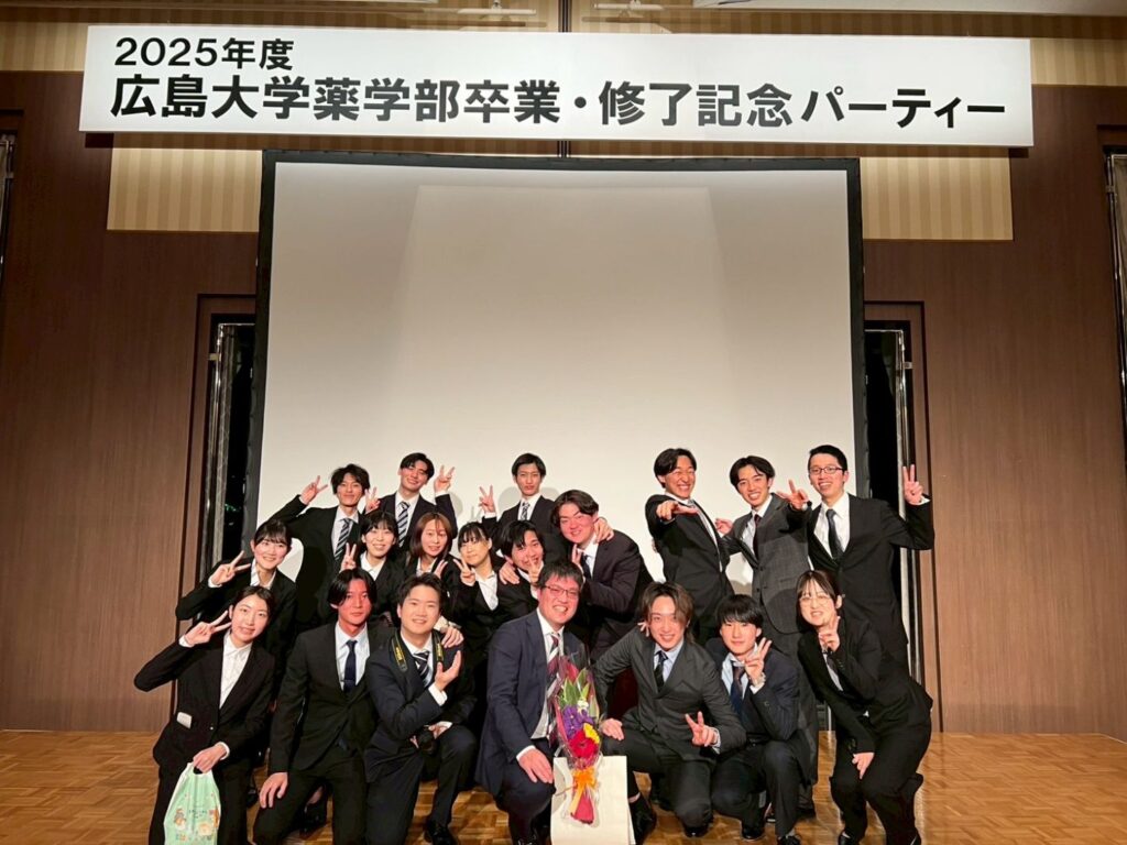 03/08/2026 / 最終更新日時 : 04/02/2026 admin イベント 2025年度薬学部卒業パーティー 2026年3月8日にグランドプリンスホテル広島で薬学部卒業・修了記念パーティーがありました。卒業論文発表会で熊谷雄太くん(B6)が優秀発表者に選ばれ表彰されました。